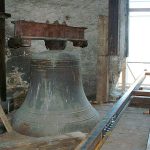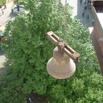 - alte Glocke ist fertig zum Abnehmen vom Turm auf der eigenen Verschubbahn.